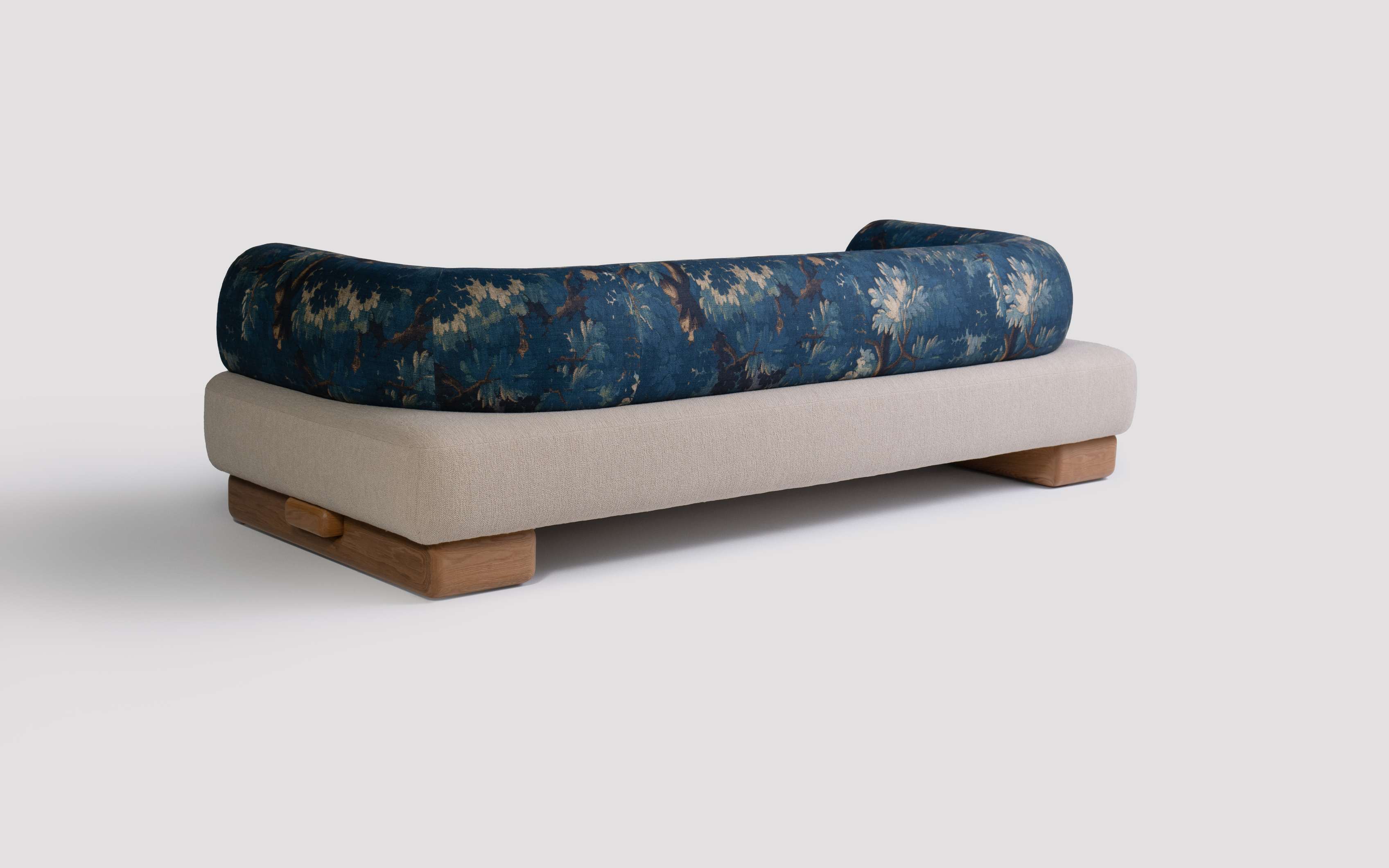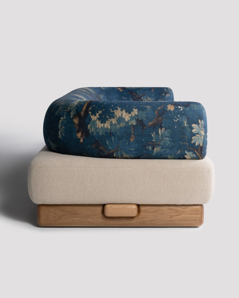 Shown in Schwarzwald by Dedar Milano & Hearth by Maharam with natural oak base.